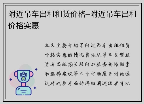 提供各类工程机械设备的销售及租赁服务,包括挖掘机、起重机、混凝土泵车等,满足客户不同的使用需求。
